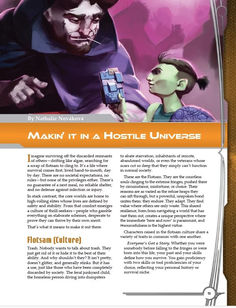 Imagine living off someone else’s trash - life where safety and stability are luxuries, and lives are ruled by whichever gang currently dominates the area. Alpha Star #1 includes the new Flotsam and Highroller cultures for those who live off the scraps of others, accompanied by the Survival and Ascendance destinies.