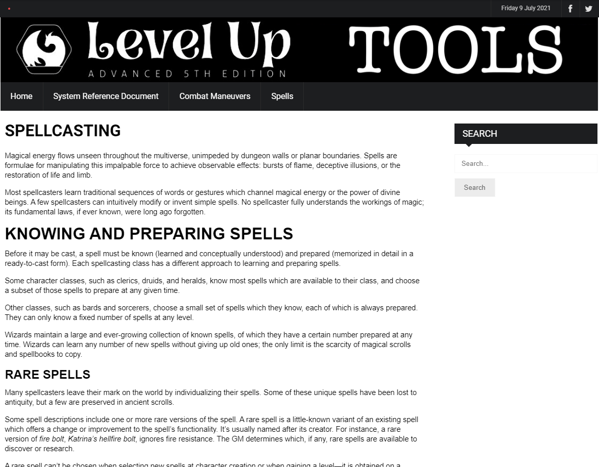 When we launch, we’ll have the full rules online, plus searchable databases of spells and combat maneuvers.